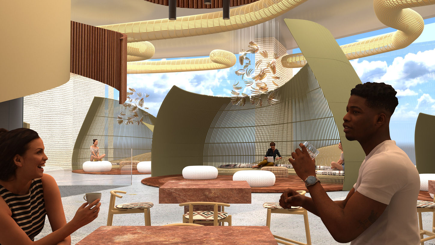 Placing our center in Palm Jumeriah was a decision deeply rooted in both historical significance and cultural symbolism. Dubai's heritage is intricately intertwined with the artistry of local textiles, notably exemplified by Al Khous, a traditional craft crafted from palm leaves. The Palm Jumeirah, an iconic man-made island shaped like a palm tree, serves as a poignant reminder of the region's rich heritage and ingenuity. By situating our cultural center in this symbolic location, we pay homage to the centuries-old tradition of palm leaf weaving while also celebrating Dubai's spirit of innovation and progress. Palm Jumeirah is known for having a lot of restaurants, hotels, and many attraction spaces for tourists, making a problem of lacking the cultural aspect. spaces for tourists, making a problem of lacking the cultural aspect. By establishing our culture center there, our culture center would stand as a beacon of authenticity and community. In a landscape often dominated by urban construction and luxury, our center offers a refreshing focus on cultural enrichment and sustainability. Through smart designs like kinetic sculptures, smart screens, and thoughtful programming, we engage both locals and visitors in a dynamic exchange of ideas and traditions. From exhibitions celebrating Dubai's heritage to workshops promoting sustainable practices, our center fosters a vibrant cultural community, redefining Palm Jumeirah as a destination where culture thrives alongside innovation and luxury.